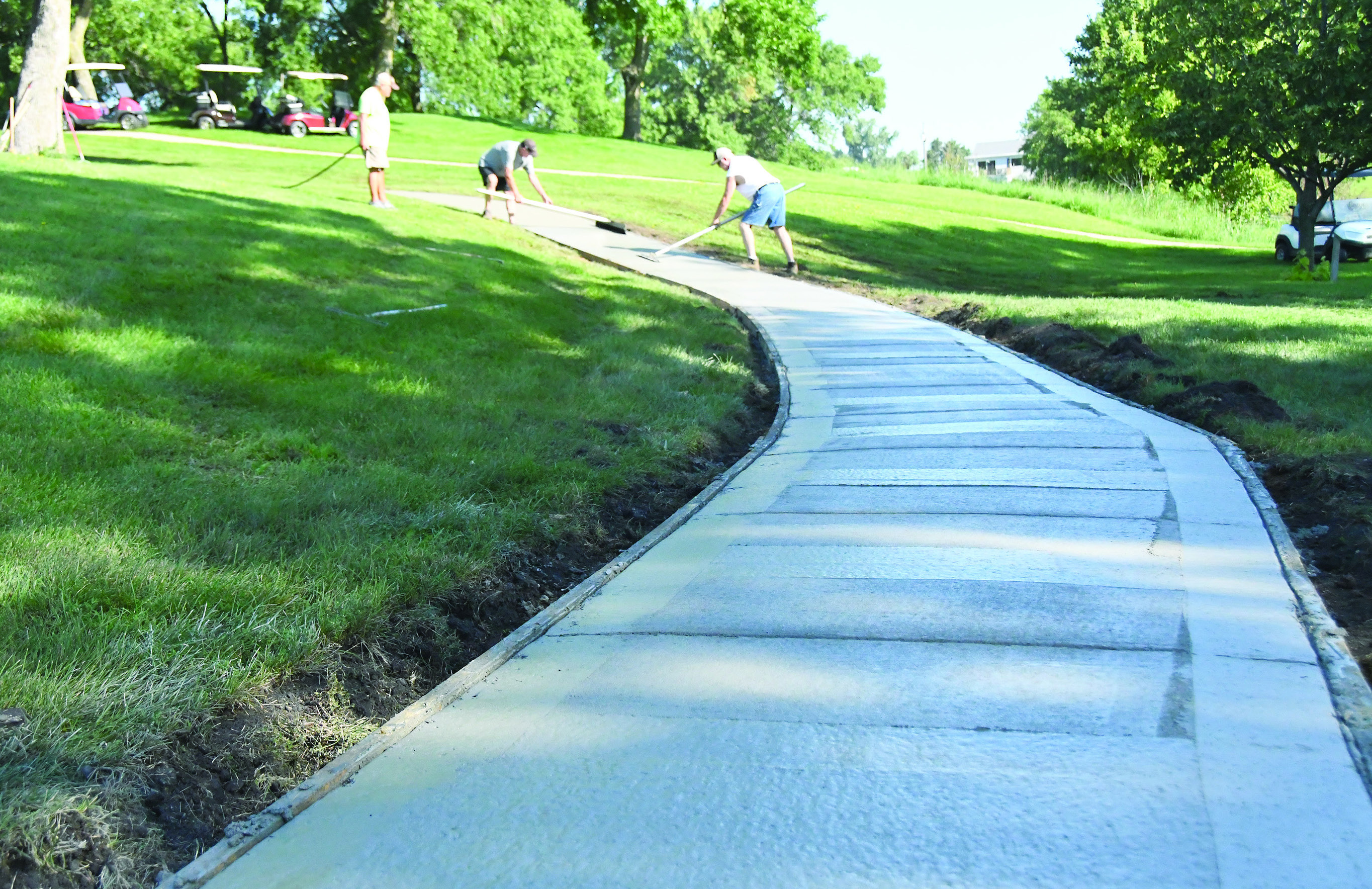 IMPROVEMENTS AT THE TRACY GOLF COURSE are continuing this summer, as volunteers grabbed their tools to install new cart paths on holes No. 1 (above) and No. 7 (right) on Tuesday morning.