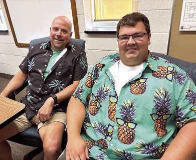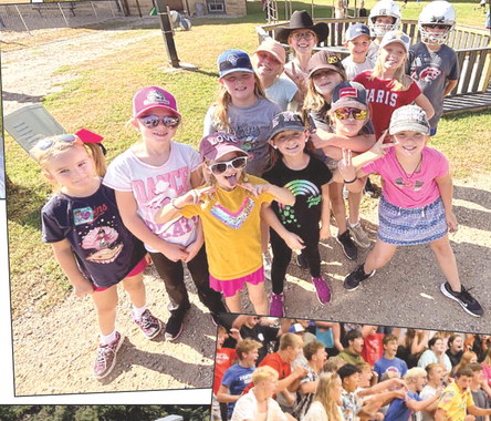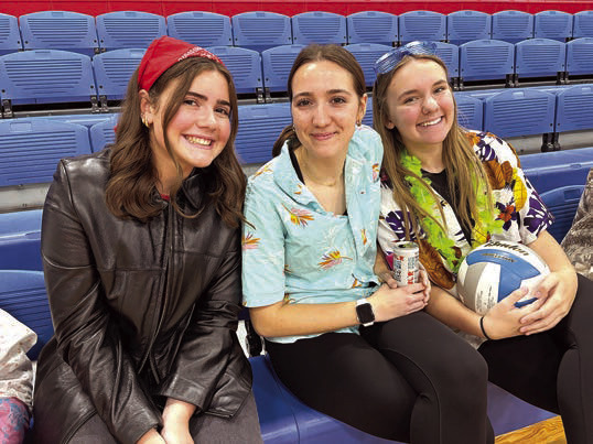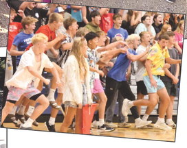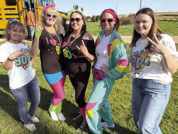 WHILE SHELBY JOHNSON (left) went the biker route, her friends, Brooke Swenhaugen and Kaylie Danielson chose a surfing vibe.HOMECOMING KING candidates Lawton Verlinde and Sy Sanders futily try passing a hoola hoop between each other in a contest against queen candidates at last Monday’s Homecoming Coronation. The girls won this contest quite easily. Photo / Tara BrandlTMB SENIOR BOYS — Sy Sanders, Tyler Arnold, Lawton Verlinde, Eli Lightfoot, David Schuh and Tyson Petersen — not only rode the bench, they moved it back and forth on the field to follow their female classmates in last Friday’s Powderpuff football game.BELOW: TAHS SPANISH TEACHER PAM ANDERSON reaches for a pass during the Seniors vs. Staff Volleyball match.LAST TUESDAY WAS “TWINSIES DAY” at Tracy Area Elementary School, and many students took part in the fun. AT RIGHT, FRONT FROM LEFT: Willow Fogelson, Halsey Vosberg, Brielle Witte; back, from left: Emma Farber, Jada Odom, Evie Bruns, Colette Roman, Ryanne Johnson, Joie Novosad and Kierlin Rohlik donned their dance outfits to form the largest set of “twins.” BELOW, FROM LEFT: Jionni Odom, Royston Rohlik and Oliver Ransford. MIDDLE: Garret Lau and Brecken Nilius. LEFT: Leena Engelkes and Joelle Sundahl.ABOVE: ARY ROLLING reaches to make a tackle on a senior player in last week’s Powderpuff football game. BELOW: TMB football players Trenton Johnson, Brody Hauger, Emery Xiong and Aiden Sanow hung out with Milroy students last week.ST. MARY’S STUDENTS gladly took part in last week’s Homecoming Dress Up Days. ABOVE: Delia Vandendriessche (left) and Emmy Beck dressed the “Wacky Day” occasion. RIGHT: Hats and shades were the name of the game last Thursday.THE TMB STUDENT BODY erupts after the seniors scored a point over the TAHS staff en route to a senior victory in the Seniors vs. Staff Volleyball match last week.