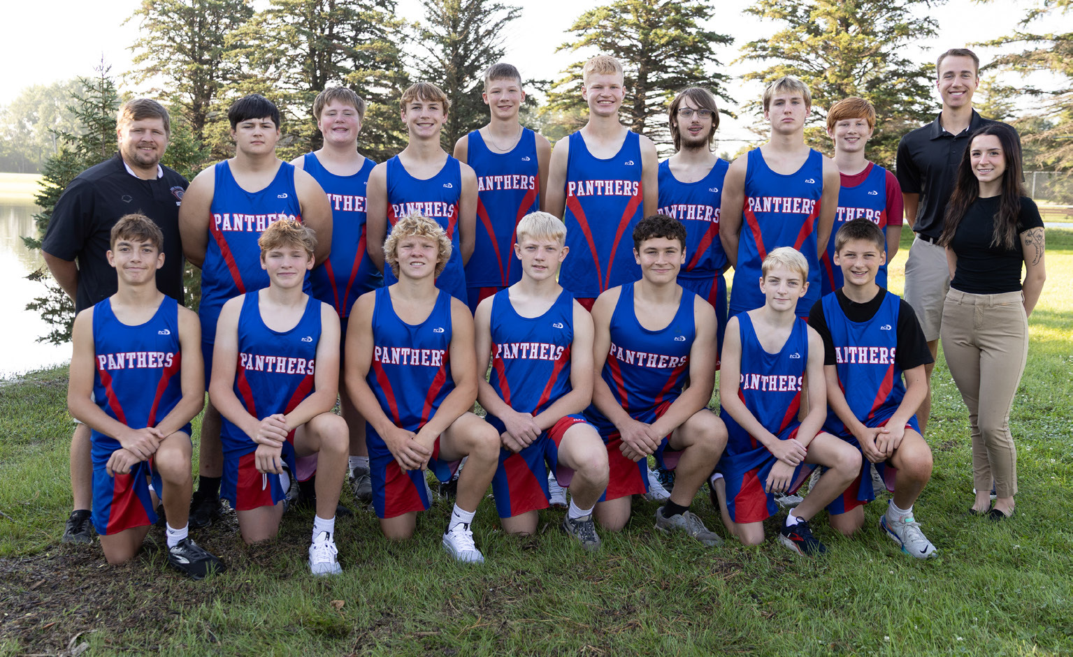 BOYS CROSS COUNTRY – Front (L to R): Owen Beier, Tyson Petersen, Logan Petersen, Noah Schmidt, Jaxter Pfarr, Gatlin Struchen, Sam Wiborg. Back (L to R): Coach Billy Dean, Adam Hippe, Cohen Radke, Taylor Squires, Zach Jones, Jackson Jenniges, Xander Brinkley, Weston Marten, Trajan Swanjord, Coach Mitchell Buerkle, Coach Katlyn Aviles. Not Pictured: Owen Maguire.