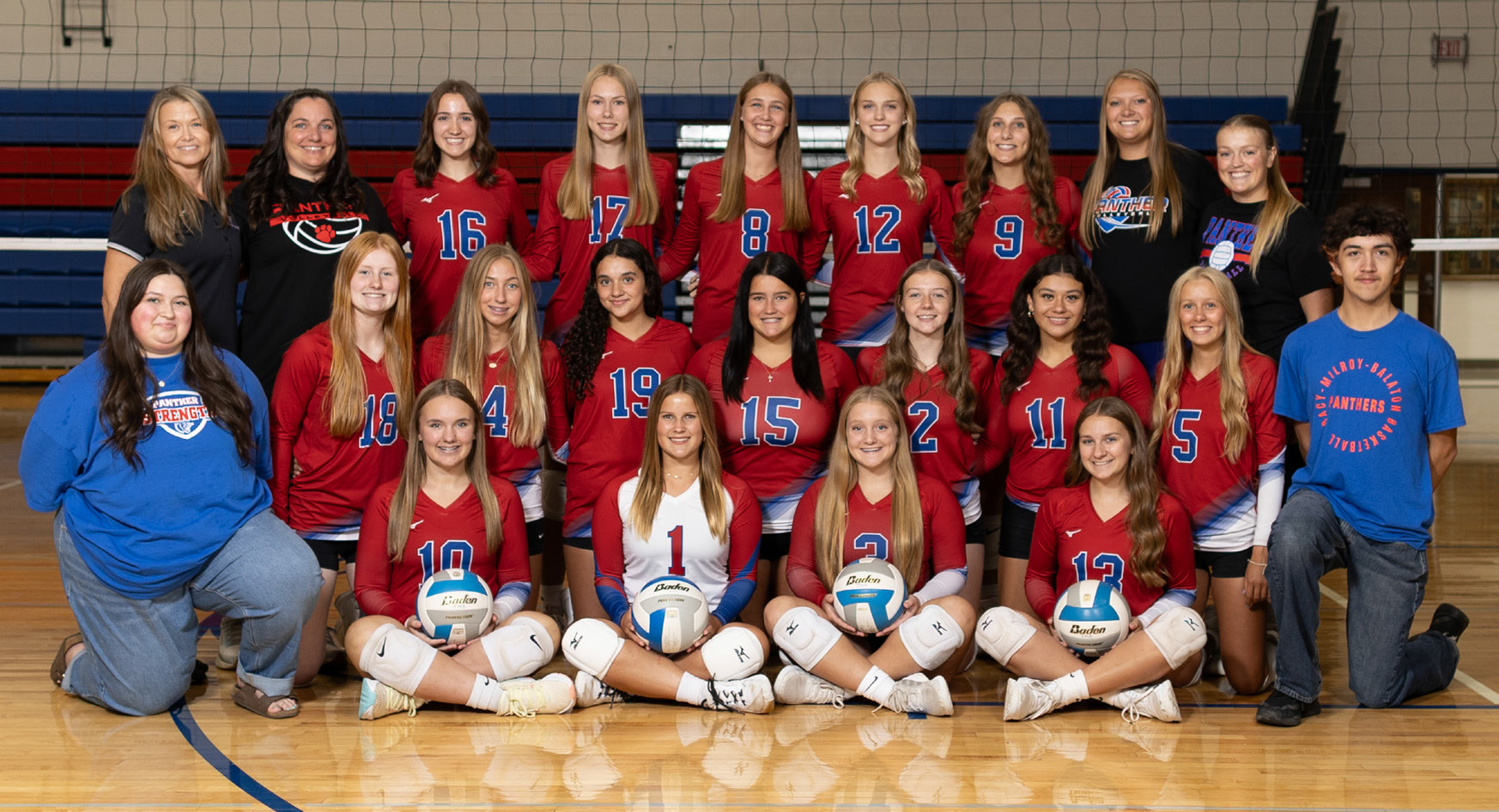 VARSITY VOLLEYBALL – Front (L to R): Kaylie Danielson, Piper Freeburg, Avery Torgeson, Braelynn Kirk. Middle: Manager Johnnie Fransen, Gretchen Lanoue, Taylor Munson, Isabella Martinez, Aliyah Loftness, Cheyenne Hoffman, Ary Schultz-Rolling, Lauren Knakmuhs, Manager Triston Whitehorse Back: Coach Heather Kamrud-Rice, Coach Alicia Swenhaugen, Brooke Swenhaugen, Elsie Knott, Melaina Ankrum, Allie Adams, Emma Carter, Coach Jadyn Lessman, Coach Anna Fultz. Not Pictured: Alli Dolan