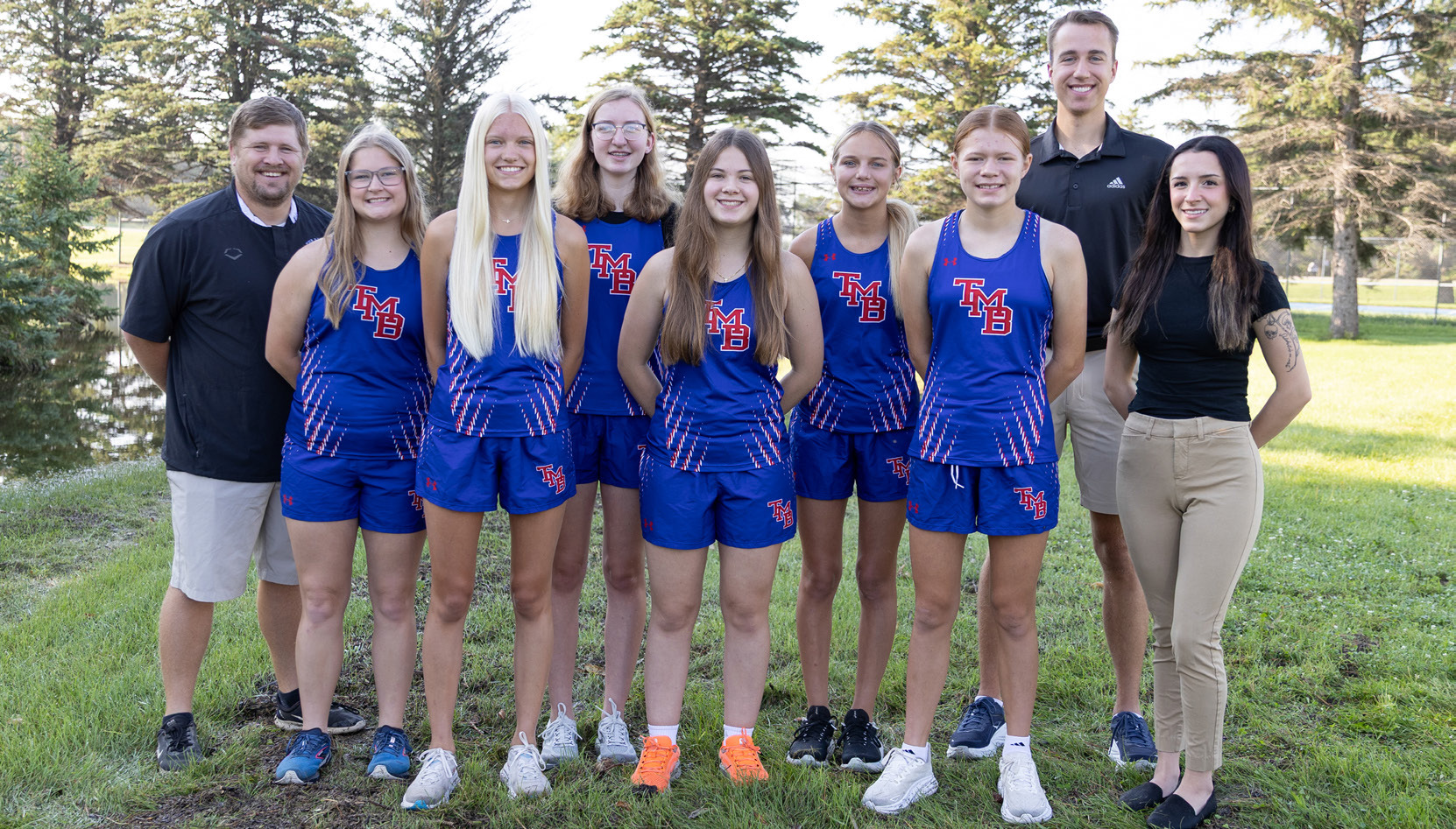 GIRLS CROSS COUNTRY – L to R): Coach Billy Dean, Payton Daniels, Miranda Mischke, Gracelynn Struchen, Jaeda Nelson, Stella Munson, Lainey Jackels, Coach Mitchell Buerkle, Coach Katyln Aviles. Not Pictured: Eveylen Rentschler.