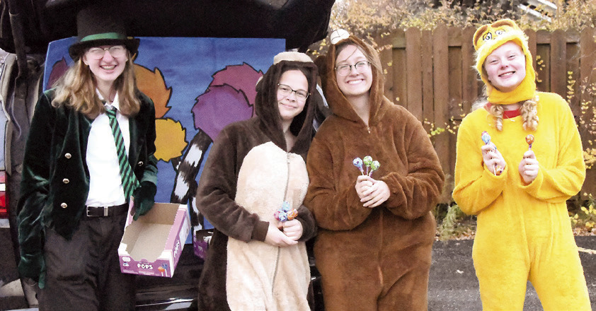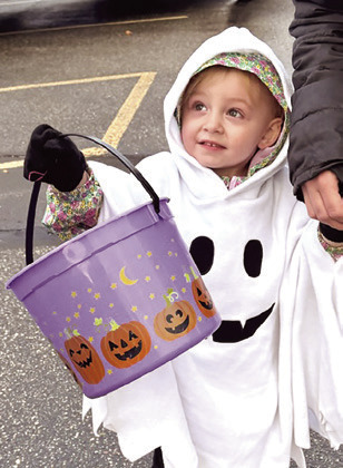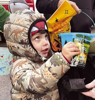 LEFT: LIAM HAUGEN, 3, shows off his treats during the Chamber’s Trunk or Treat. RIGHT: Shelby Krause, 2.5 has her bucket ready to be filled.