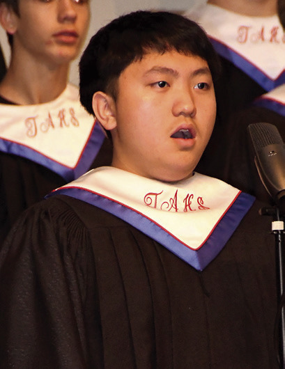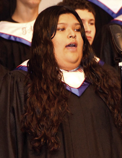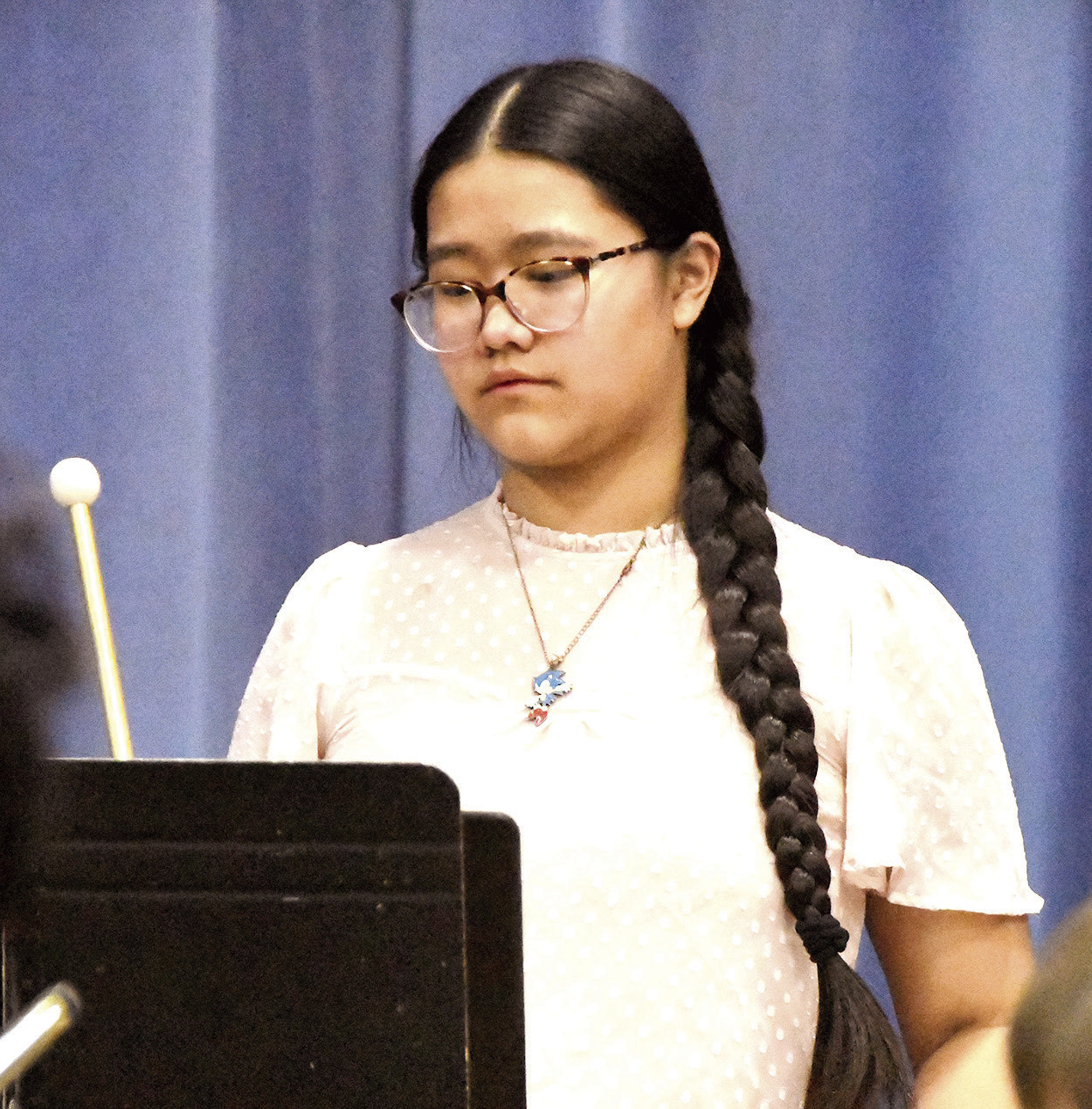 THE TRACY AREA HIGH SCHOOL BANDS AND CHOIRS rang in the concert season Monday evening with their annual Fall Band & Choir Concert. The high school choir (above) performed four numbers and featured solos by Kristin Arellano (below, left) and Marcus Vue (below, right). AT RIGHT, Aevery Moua plays the tympani for the junior high band. Please see more photos on Page 11. Photos / Per Peterson