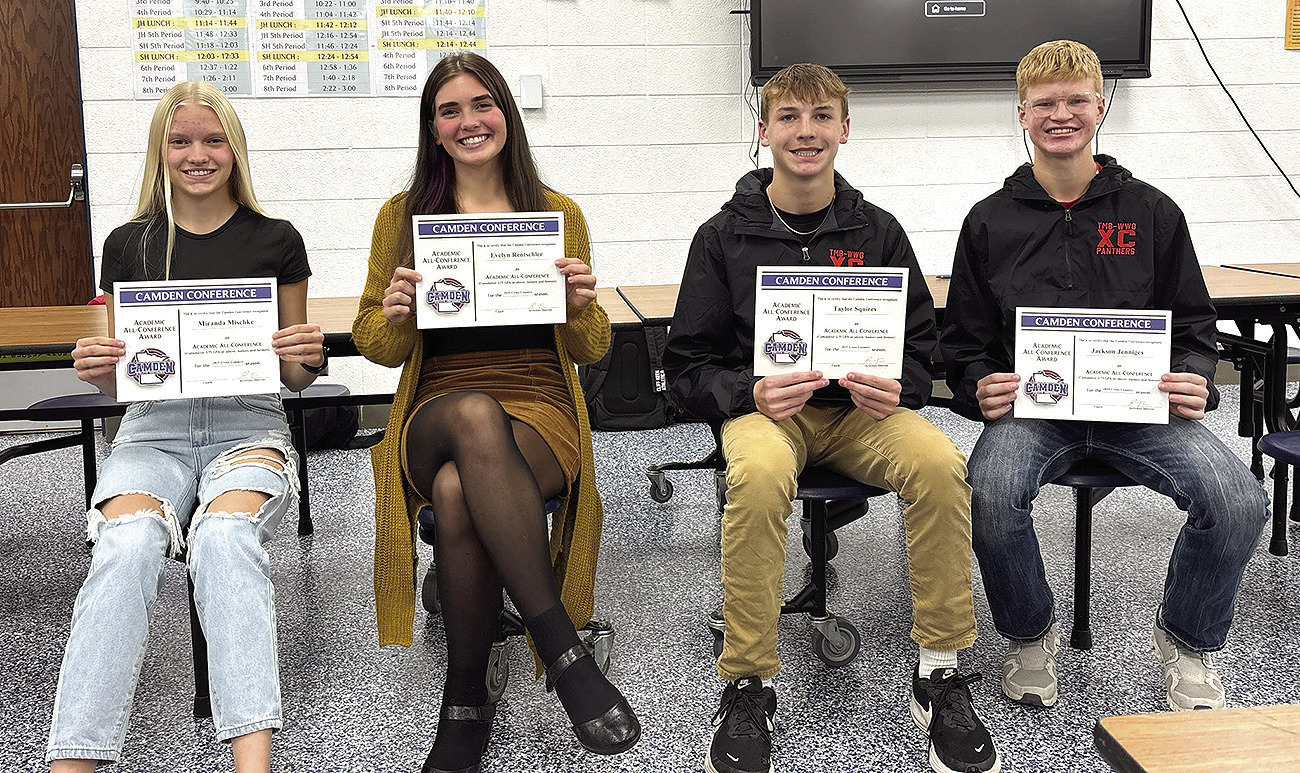 ACADEMIC ALL-CONFERENCE AWARDS this year went to, from left: Miranda Mischke, Evelyn Rentschler, Taylor Squires and Jackson Jenniges.