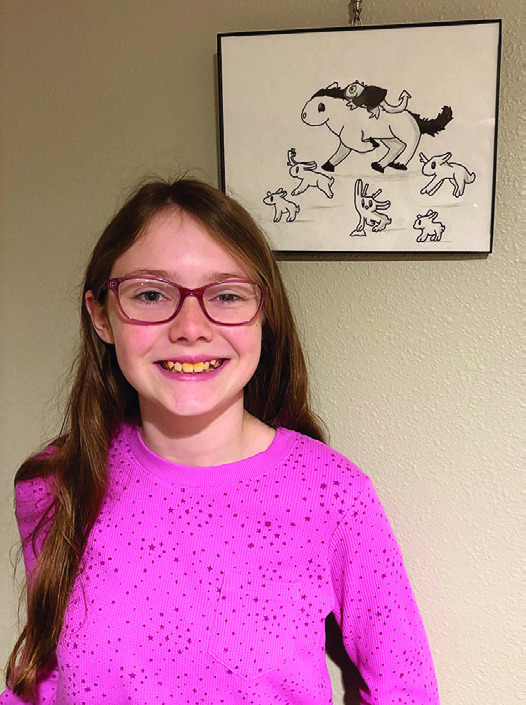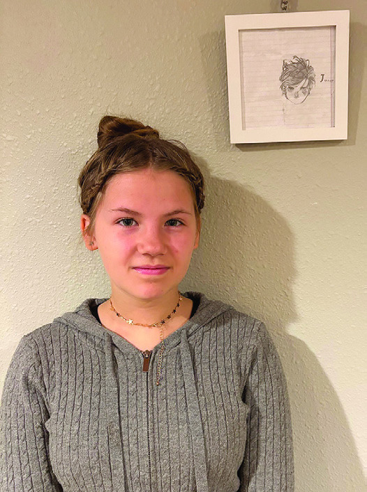 In the 6-11-age group, there was a tie for first place between Aubrey Harsh and Matthew Schonhardt. Harsh’s artwork is called “Frostmoth” is inspired by “Wings of Fire” and is done in colored pencil on paper.