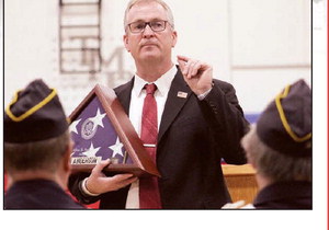 Anderson shared with the audience the flag he received at his father’s funeral. He also, in his educator’s voice, gave an explanation of each part of the flag, something he had to memorize during elementary school. His teachers taught him there may be a day that you aren’t able to see the flag, and we should know what it represents and the importance of it. He asked the students and community members that everytime they stand for the Pledge of Allegiance or National Anthem, they remember what that flag means to them, their families and all veterans.