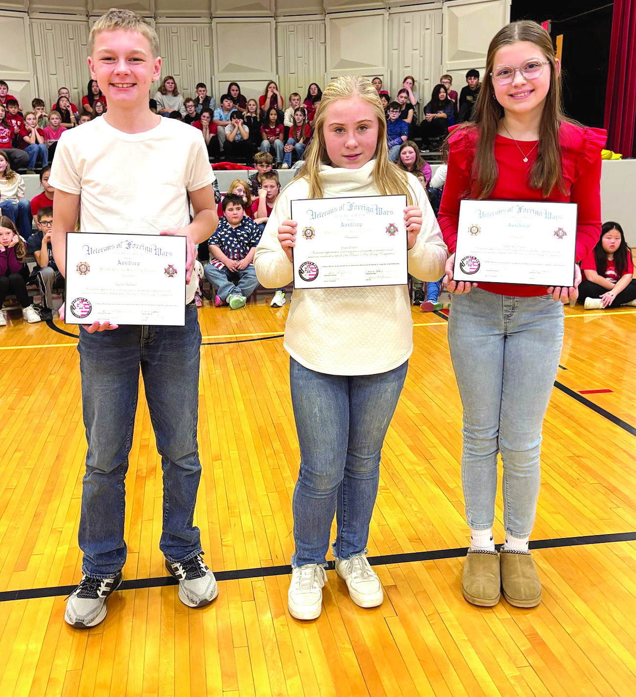 THIS YEAR’S WINNERS OF THE WESTBROOK VFW POST’S PATRIOT’S PEN ESSAY CONTEST were, from left: Calvin Parker, Elsie Olson and Hazel Klumper. Photos / Per Peterson