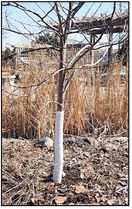 Wrapping trees or adding guards to help protect bark from cracking caused by daytime sun and overnight freezing. Remove guards in late spring.