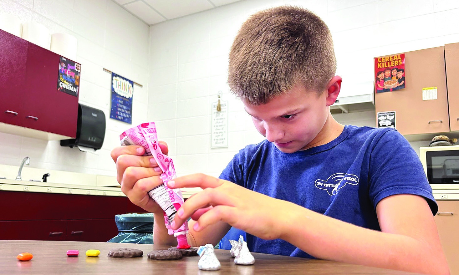 DELACEY SMITH (ABOVE), WILLIAM BUYCK AND GRACE NELSON were three Tracy Area Elementary School students who made “gross snacks” recently at the high school. The kids were supervised by high school students, including Sophia Harsh (bottom). Photos / Per Peterson
