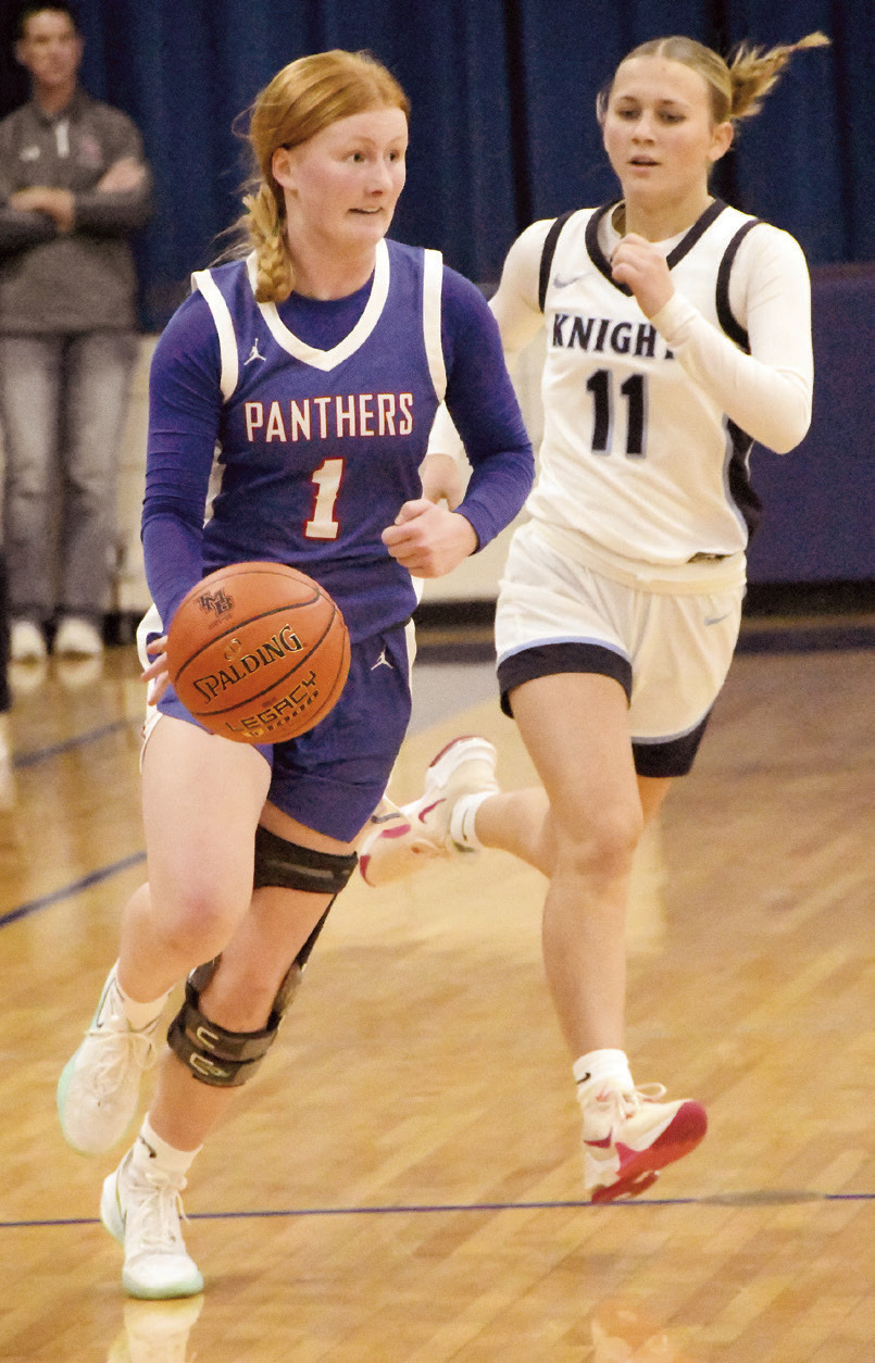 The teams were tied at 33, 37 and 39 as the second half wore on, and neither team was able to establish much of a lead. RTR had a 50-44 advantage with 3:43 left, courtesy of a three-point play by Brezlyn Buchert. but backto- back buckets by Gretchen Lanoue and a free throw by Allie Adams put the Panthers up 53-52 with just under 2 minutes to go.