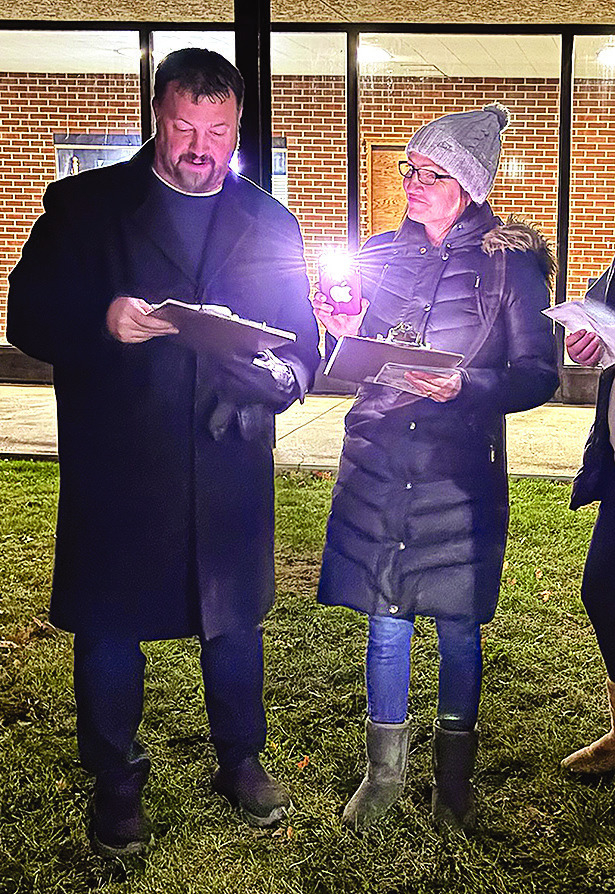 PRAIRIE HOME HOSPICE & COMMUNITY CARE held its annual “Light to Remember” in front of the VMC last Thursday evening. The event included a devotional, singing, led by Jamie Leonard, a tree lighting ceremony and the reading of names of late Tracy residents. LEFT: Tracy United Methodist Church Pastor Miron Carney reads a scripture from the book of John. MIDDLE: Jamie Leonard sings “I Wonder as I Wander.” RIGHT: Good Shepherd Lutheran Pastor Cory Brockman reads the welcome message.
