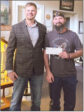 THE BALATON VET RUN CELEBRATED ITS 10TH YEAR with a $14,000 donation to the Eagles Healing Nest in Sauk Center. Pictured is Jim Skarl (right) presenting a check to Eagles Nest Head Coordinator Shawn Kor. The Balaton Vet Run also donated a picnic table to the City of Balaton and a nice care package to 1-151 troops. Submitted photo