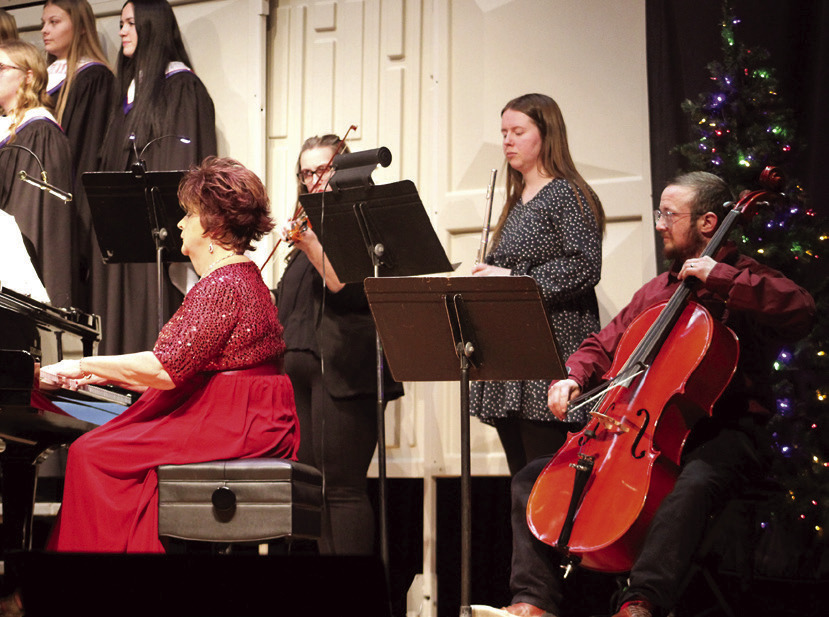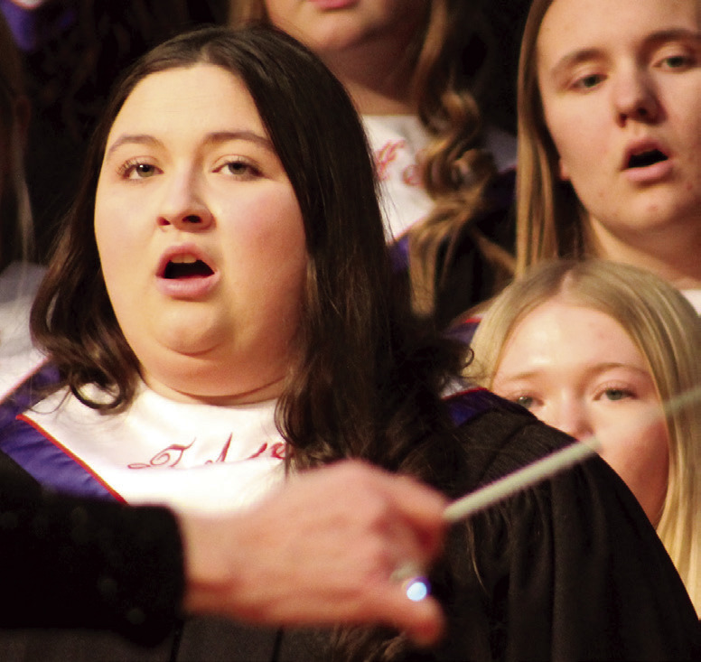 SENIOR HIGH CHOIR MEMBERS, from left, Piper Freeburg, Johnnie Fransen and Eli Lembke performed solos as the choir sang “That’s Christmas to Me.” Photos / Tara Brandl,