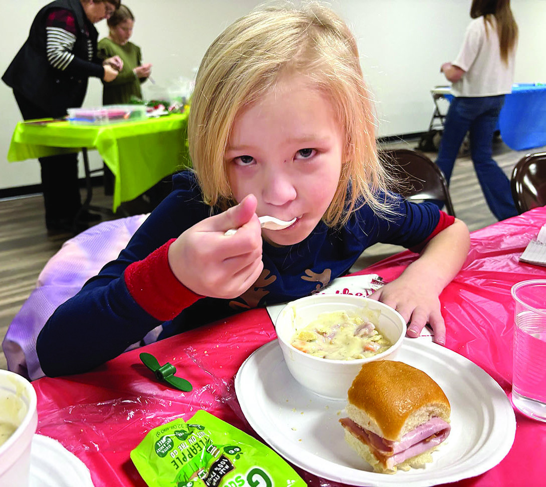 LEFT: JASON (6) AND PAISLEY (7) DANIELS of Balaton were big fans of not only Santa, but the great soup and sandwiches served up at the big event.