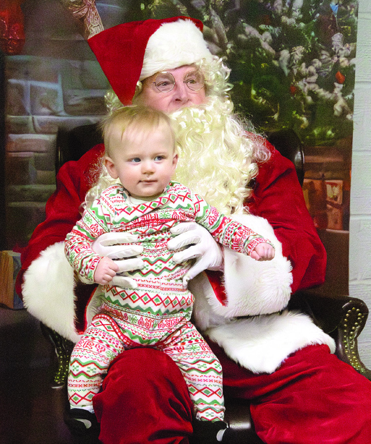 JAMESON FOGELSON, 8 months, of Tracy, (left) and 9-year-old Brenner Zens of Currie were happy to spend some time with Santa.