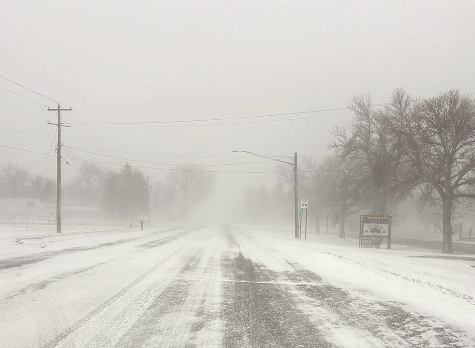 THERE WERE TWO VERY DISTINCT SIDES TO THE WEEKEND SNOW AND WIND. The photo above despicts an idyllic, Christmasy scene at the Park Place on 2nd St. building. However, the image below tells a different picture, as high winds made travel tricky everywhere Sunday.