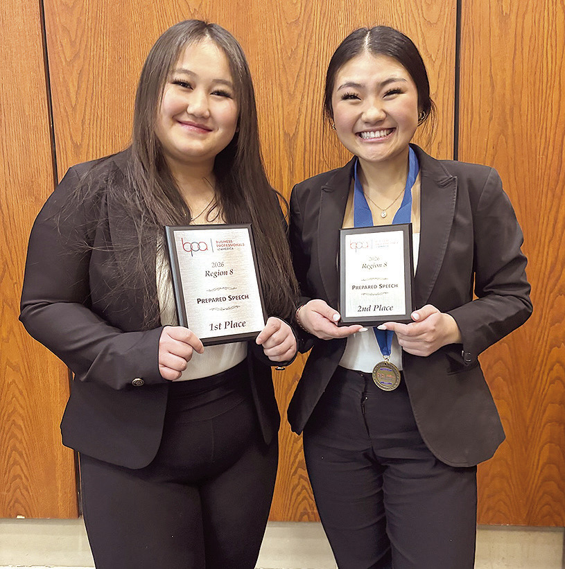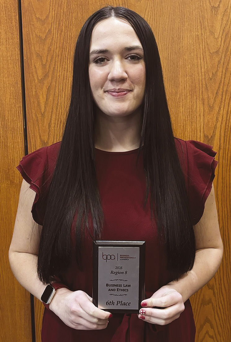 Evelyn Ourada placed fifth, and Erickson was sixth in Business Law and Ethics, which tests students’ general knowledge. Schuh said they prepared for the contest with the Business Law class they were in this past semester, but added that they didn’t have much time to cover the ethics portion so that came from outside research. Ourada was also fifth in Medical Coding.
