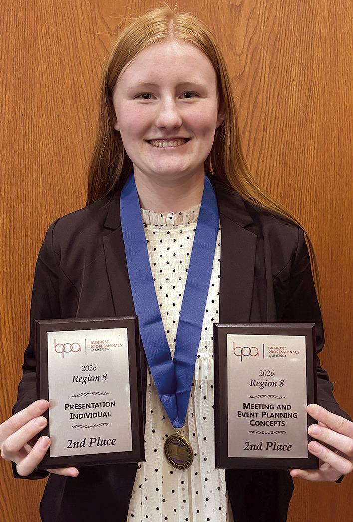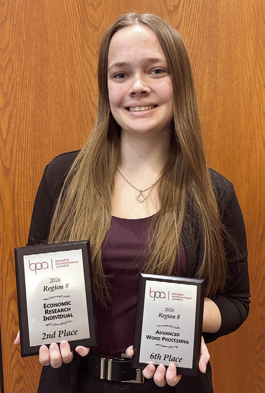 AnnaRae Bowman was second in Economic Research Individual. The topic for her research this year was “How important is earning a college degree in 2026.” Bowman was to research the economics of this topic, prepare a research paper and a presentation to the judges.