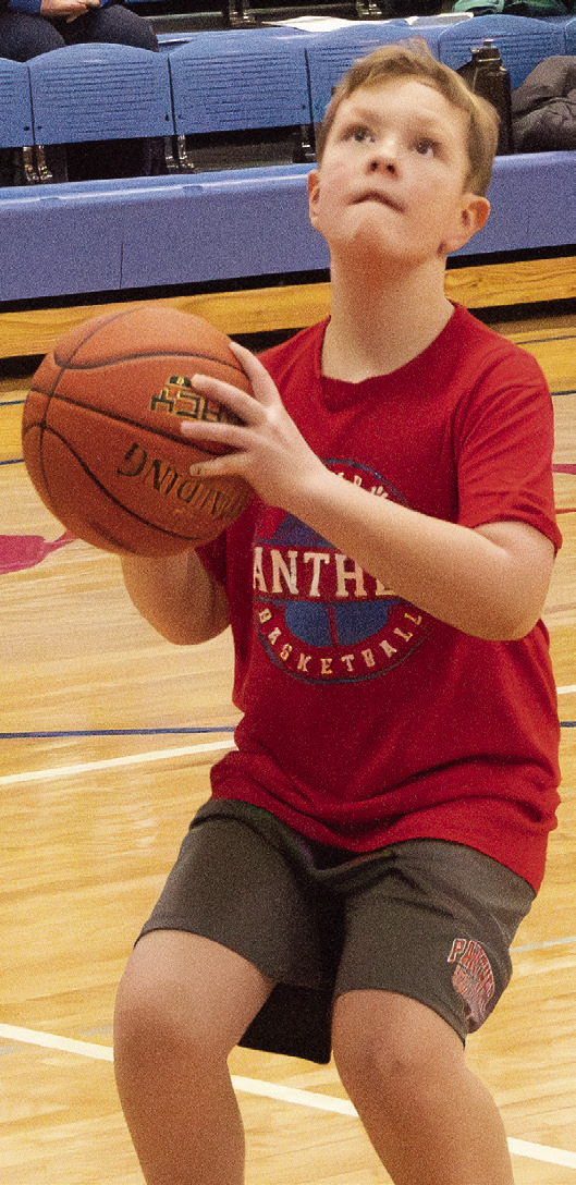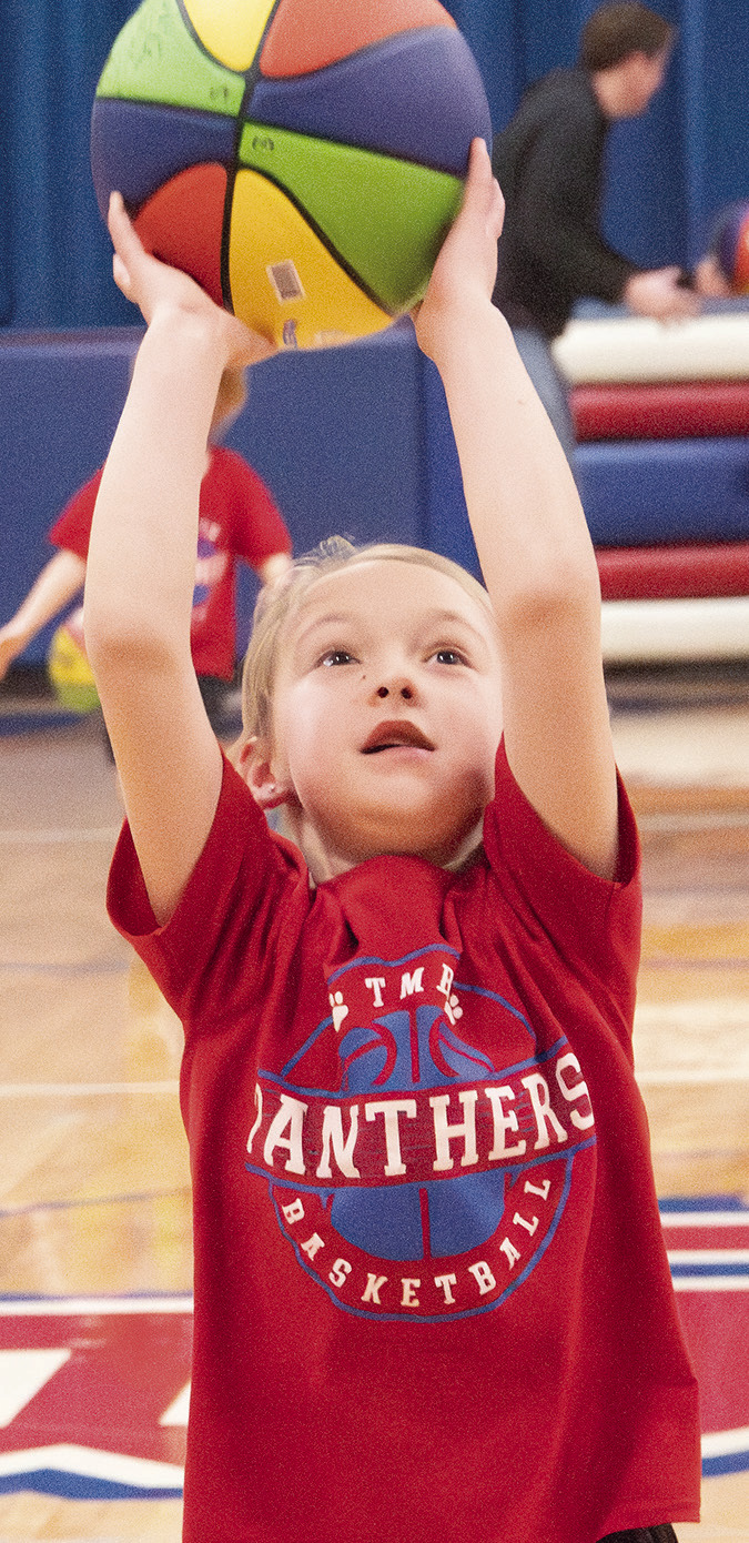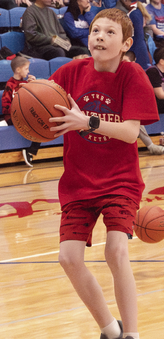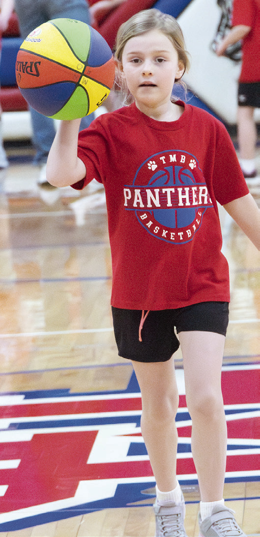 FUTURE TMB BOYS AND GIRLS hoopsters took center court this week to show off their basketball skills at halftime of varsity games. Pictured, clockwise, are Stanley Paradis, Garrett Esmay, Wilder Holm, Emmy Beck, Emma Farber and Emma Schreier. Photos / Per Peterson