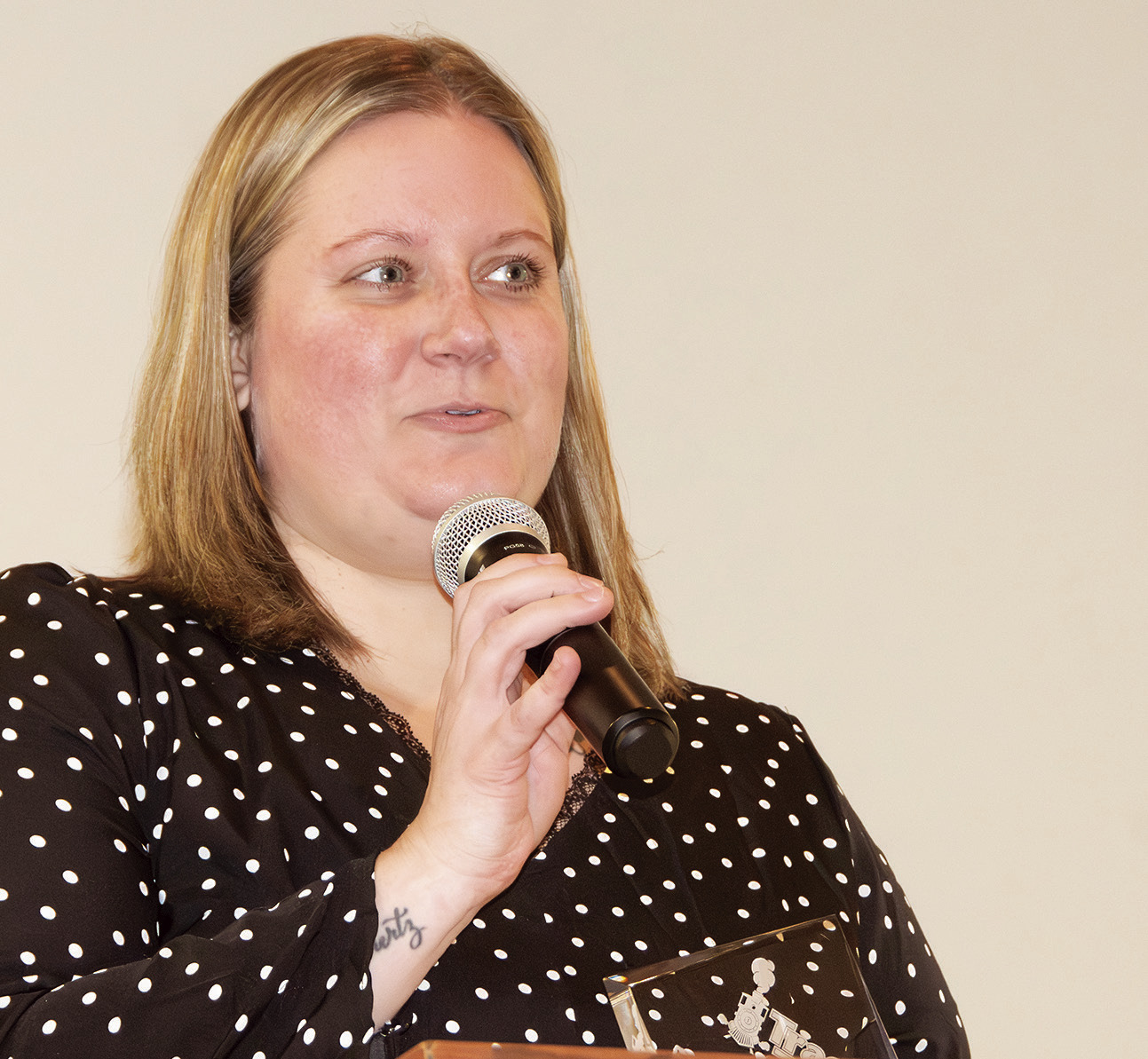 “Not very often am I caught this off-guard,” Schons said upon accepting her award. “I don’t know what to say — I was not expecting this! Thank you.”
