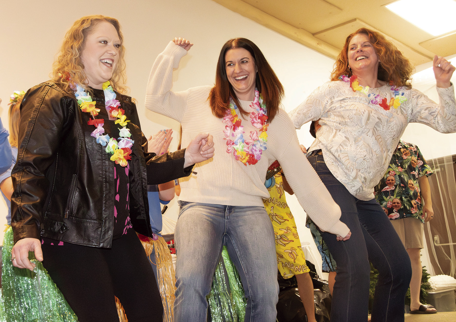 PUTTING ON THEIR DANCING SHOES to win a prize Saturday were, from left, Amanda Johns, Katie Siemonsma and Ellen Stassen Monshaugen. They were part of a dance-off that actually had nothing to do with the Snowflake Drawing.