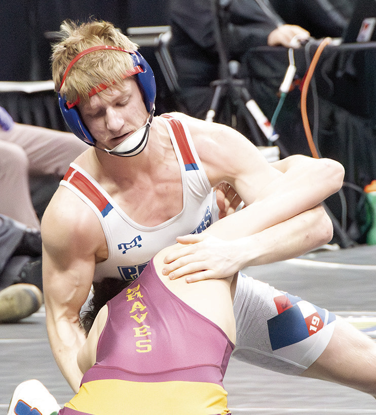 In the state quarterfinals Friday, Schuh, who entered the tournament with a 43-6 record, was matched up against Layne Root of Chatfield, and this one could’ve gone either way. After a scoreless first couple of minutes, Root went up 2-0 with a secondperiod takedown. An escape by Schuh with :51 left in the second cut Root’s lead in half, and Schuh tied it with another escape with 1:55 to go in the third. With time winding down, Schuh scored a late takedown to seal the match with a 5-2 decision.