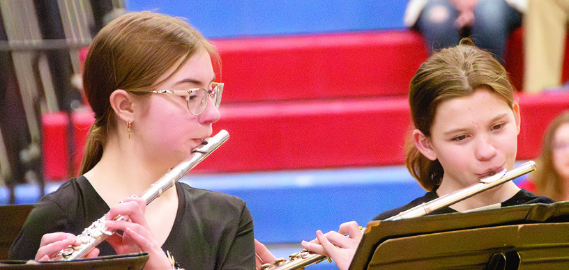 THE PORTRAITS IN MELODY concert was put on Monday and featured the TAHS junior high and senior high bands and choirs. Pictured at right is the senior high choir singing “California Dreamin’. BELOW: That’s Serena Muscatello (left) and Elizabeth Buyck. Please see more photos on