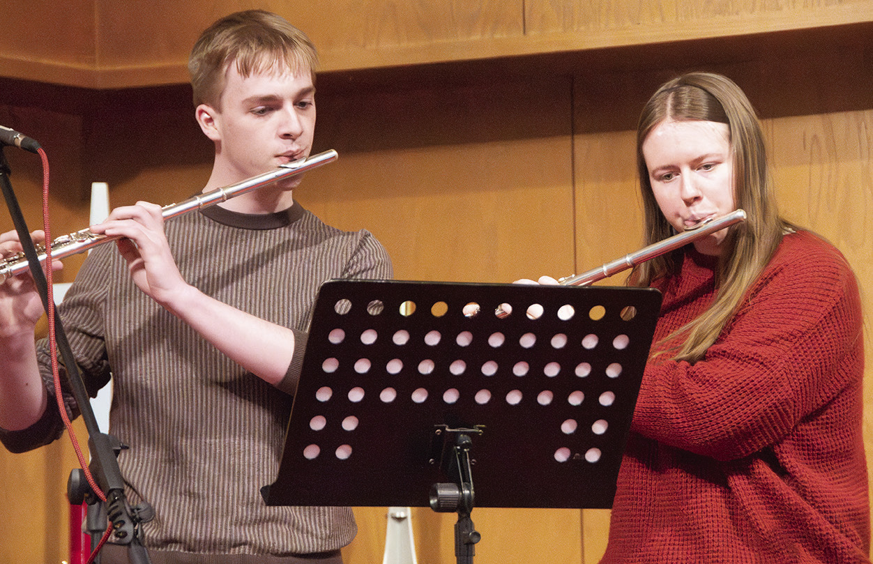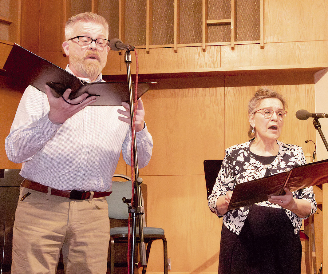 That was followed by Steve Meyer and Knott’s duet “The Prayer.” Glenn Anderson sang “I Believe in Father Christmas” with Wendy Johnson backing him up on the flute. Alan Pierson performed a piano solo of one of his original songs; Joseph and Aubree Cheadle sang a duet, “All I Ask of You” from the Phantom of the Opera; and Celia Brockway sang two traditional Irish/ Scottish numbers with the accompaniment of Caroline Koska on the harp.