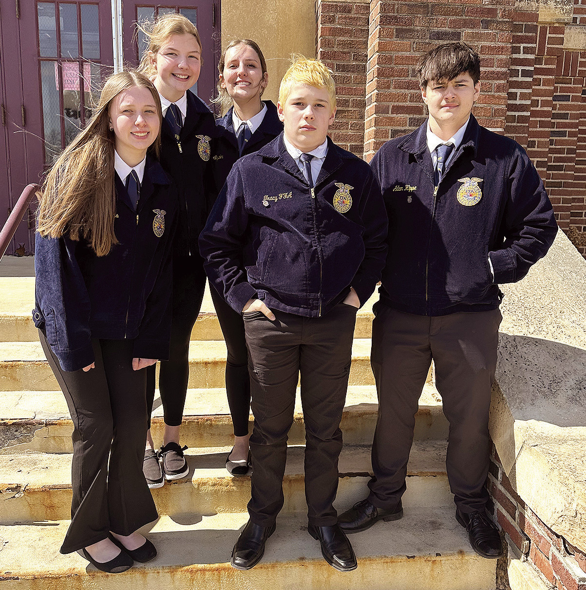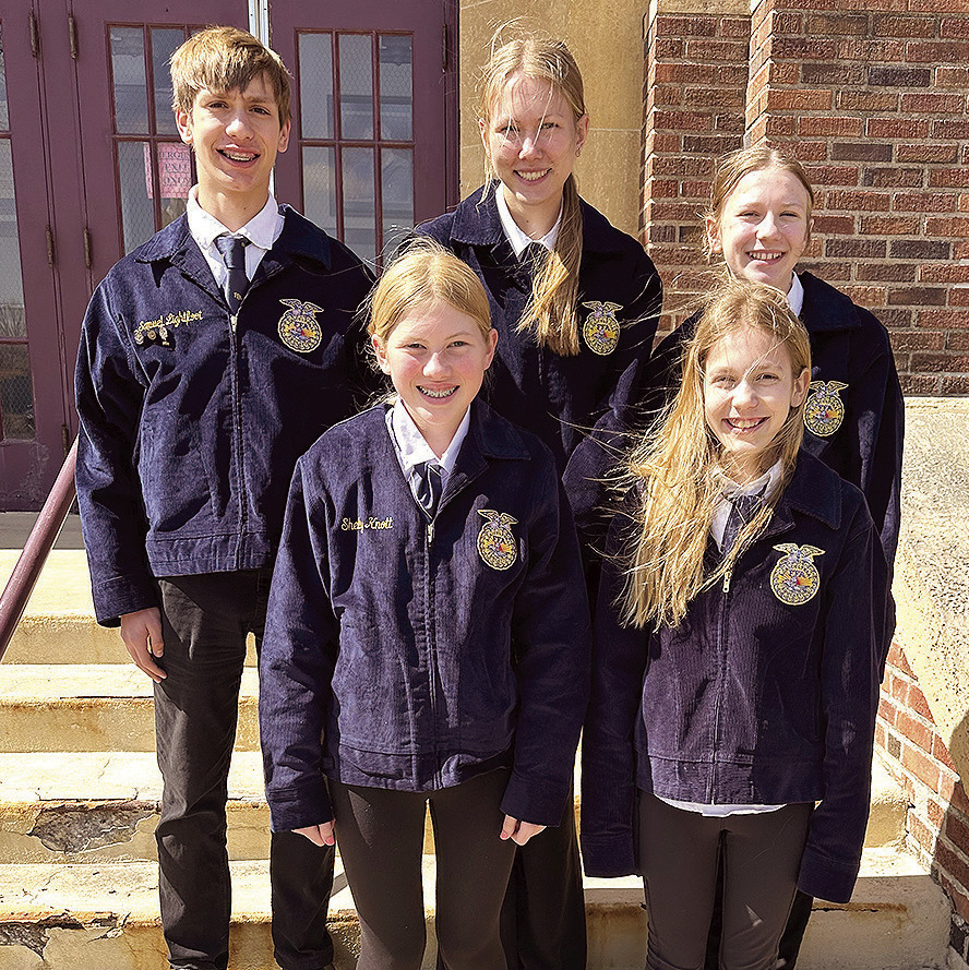 POULTRY TEAM: Front, from left: Shelby Knott, Ava Lightfoot. Back, from left: Sam Lightfoot, Elsie Knott, Caroline Lanoue. The team was 3rd overall and will advancen to state. Knott placed 8th, Lanoue 13th, Sam Lightfoot 15th, Ava Lightfoot 19th, and Shelby Knott 40th. The team is coached by John Lanoue.SOILS TEAM: Front, from left: Jaxter Pfarr, Levi Duscher, Luke Millman Back, from left: Owen Beier, Christian Fransen. The team placed 4th overall and will advance to state. Pfarr placed 10th, Millman 14th, Frasen 16th, Duscher 22nd and Beier 23rd. The team is coached by Paul Skoglund.NURSERY LANDSCAPE TEAM: Front, from left: Jocelyn Walters, Andrew Hippe, Adam Hippe. Back, from left: Izzy Wendorff, Jayda Snyder. The team placed 6th overall. Adam Hippe placed 14th, Snyder 15th, Wendorff 22nd, Walters 29th and Andrew Hippe 31st. The team is coached by Nikki Hippe.